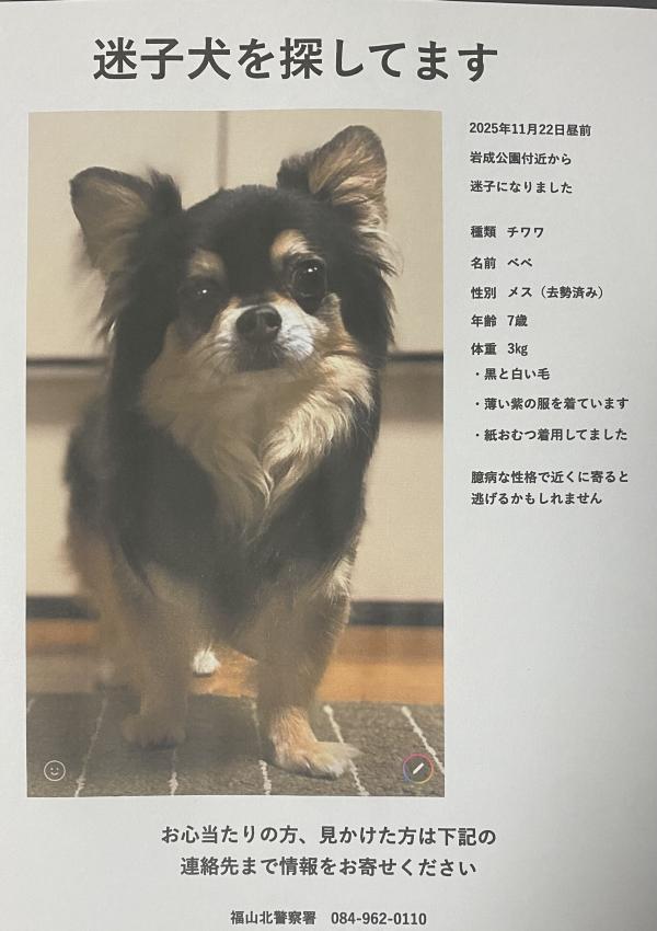 広島県福山市でチワワ迷子